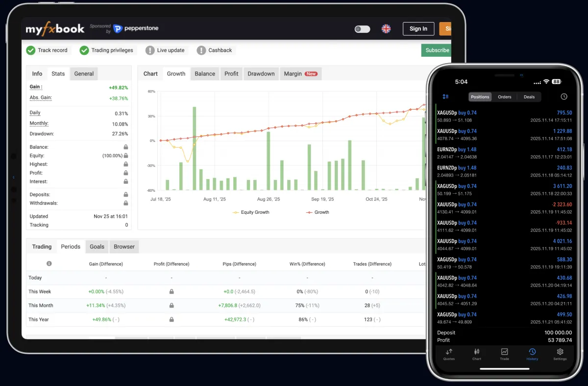 MyFXBook independently tracks and verifies live trading accounts using secure API connections.